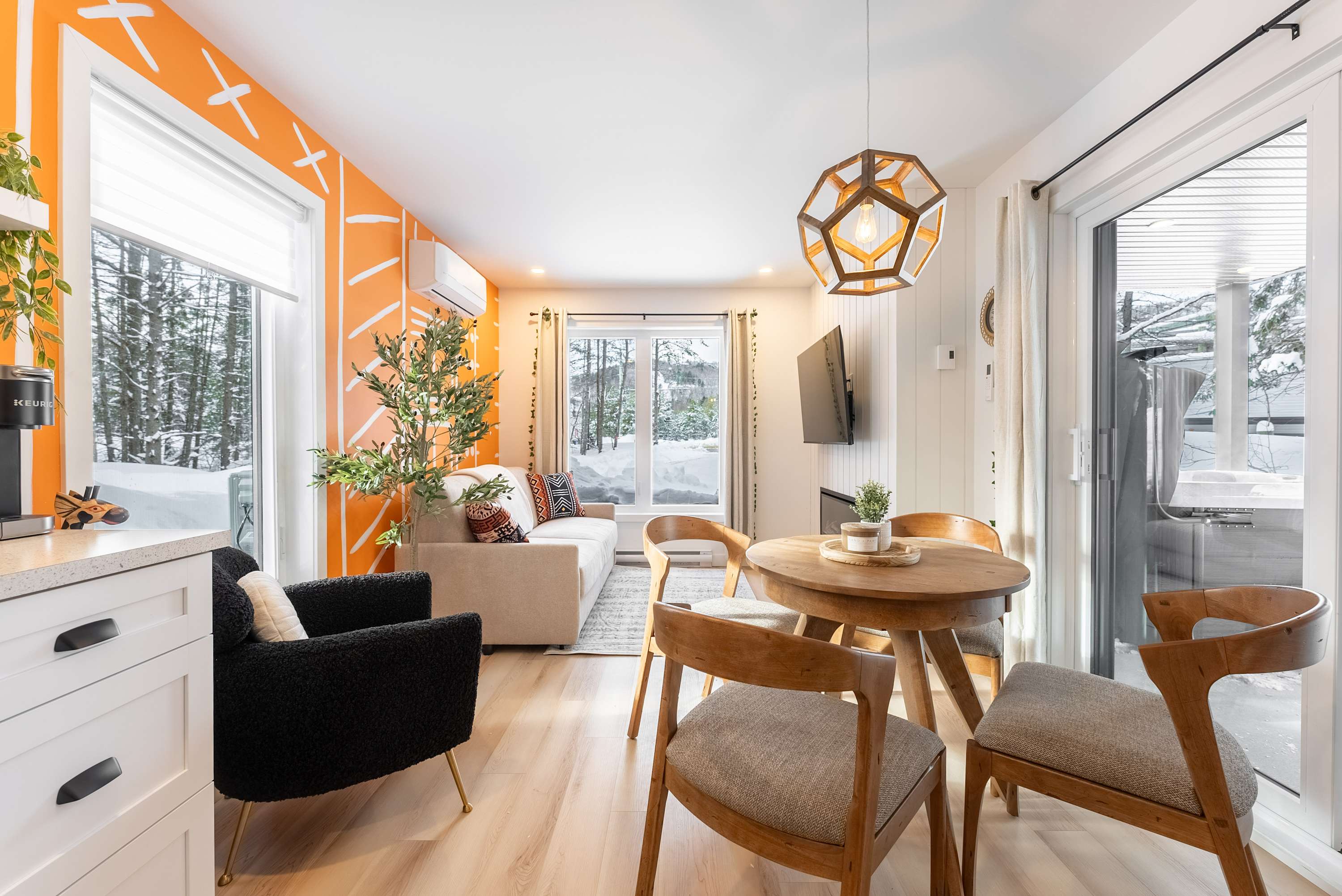 Ce condo Le Safari Nordik offre une immersion totale en pleine nature tout en combinant confort moderne et raffinement. Idéal pour 2 à 4 voyageurs, il garantit un séjour reposant et agréable.