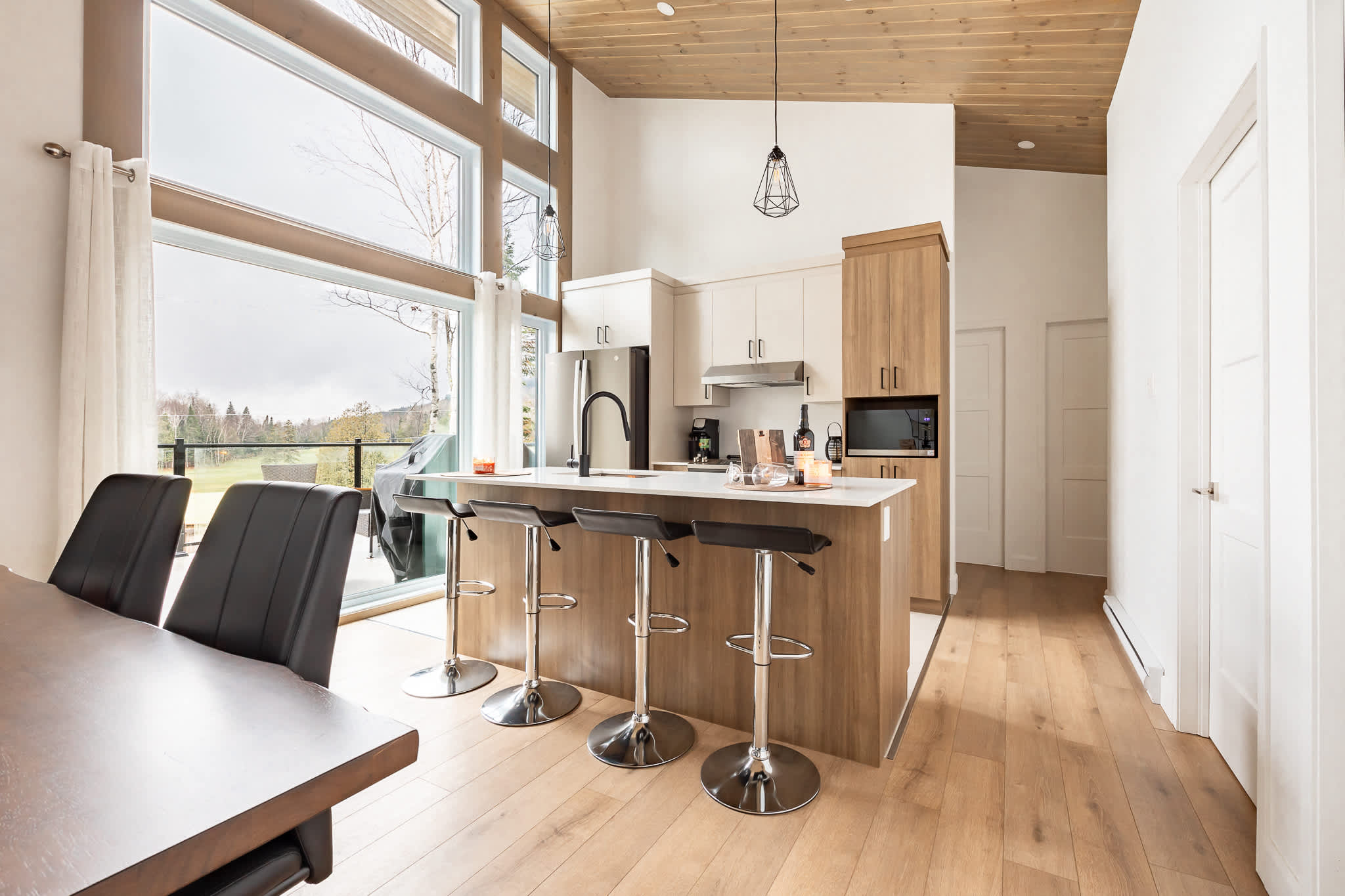 Ce lieu d'exception offre une intimité inégalée. La vaste terrasse intime est parfaite pour profiter des vues sur un terrain de golf et une station de ski. Les sentiers pédestres, de motoneige et de VTT à proximité vous invitent à l'exploration.