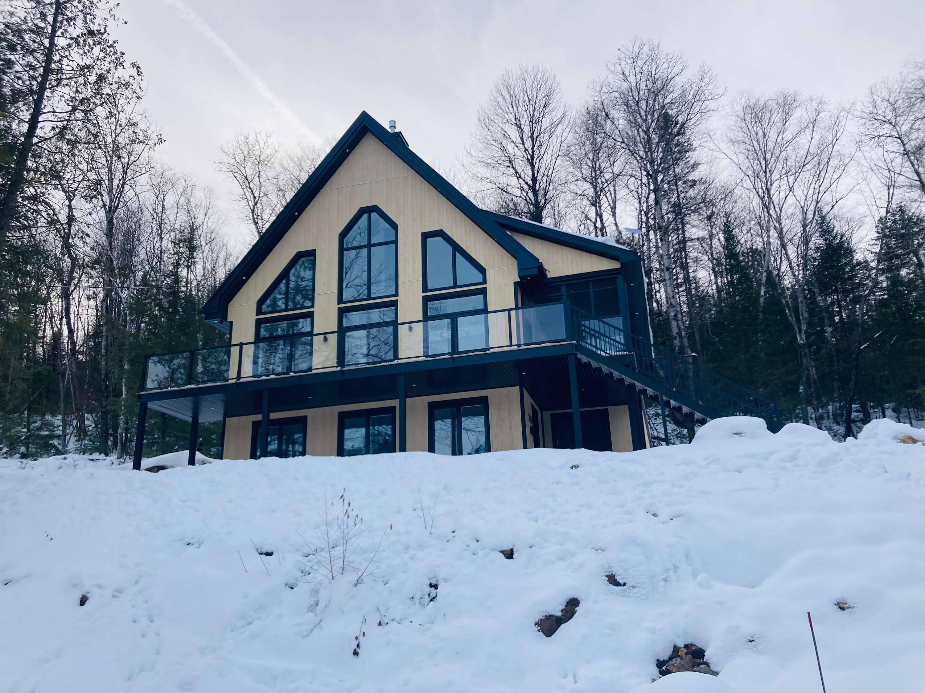 Bienvenue dans ce superbe chalet neuf, ayant un accès à la rivière. Entouré par une beauté naturelle à couper le souffle, cet havre de paix offre une retraite parfaite.