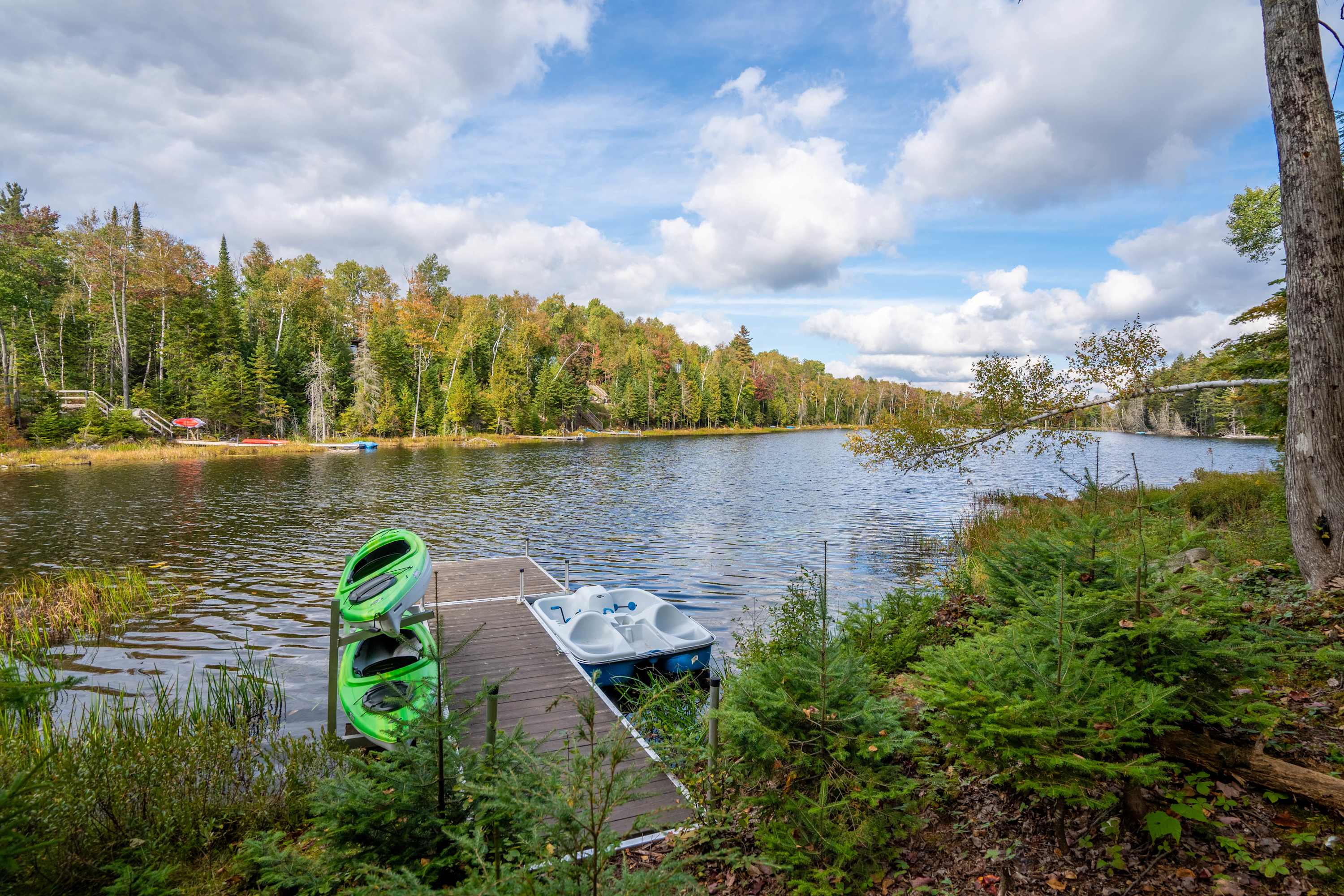 Profitez d'un foyer extérieur pour des soirées chaleureuses et d’un accès direct au lac, où vous pourrez explorer en kayak ou en pédalo.