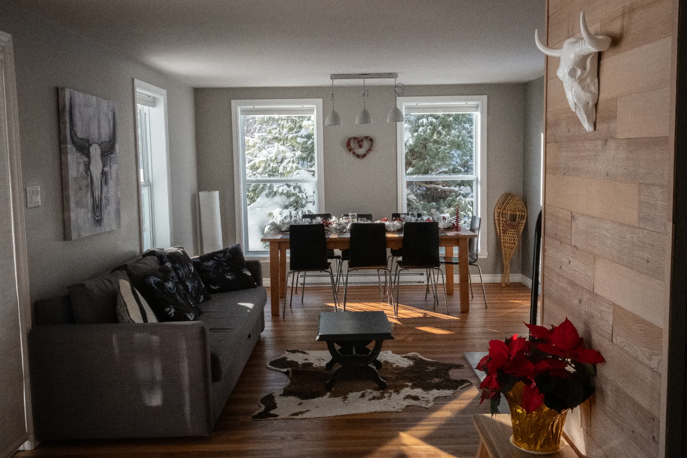 Le Chalet O’Hara peut accueillir confortablement 8 voyageurs et offre un environnement paisible, parfait pour se ressourcer tout en restant près des services et des activités de plein air.