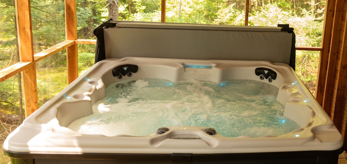 • ♨️ Spa privé sur la terrasse couverte avec moustiquaire, parfait pour se détendre en pleine nature