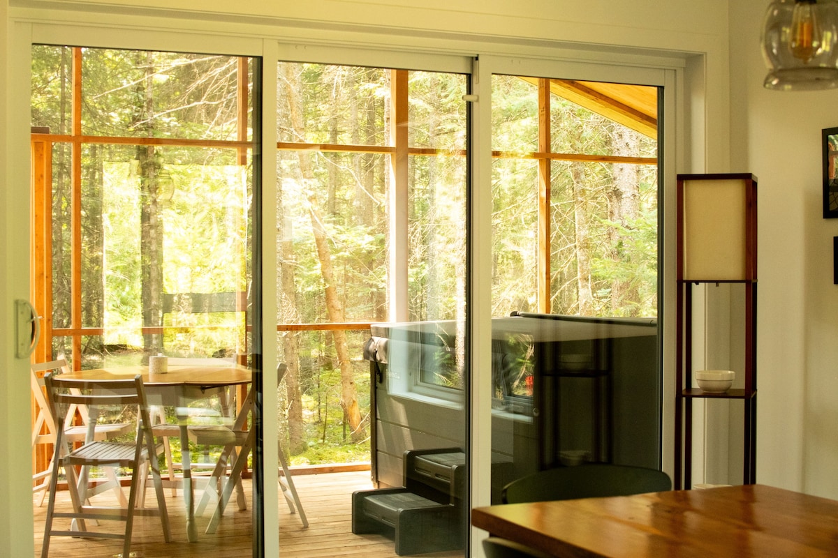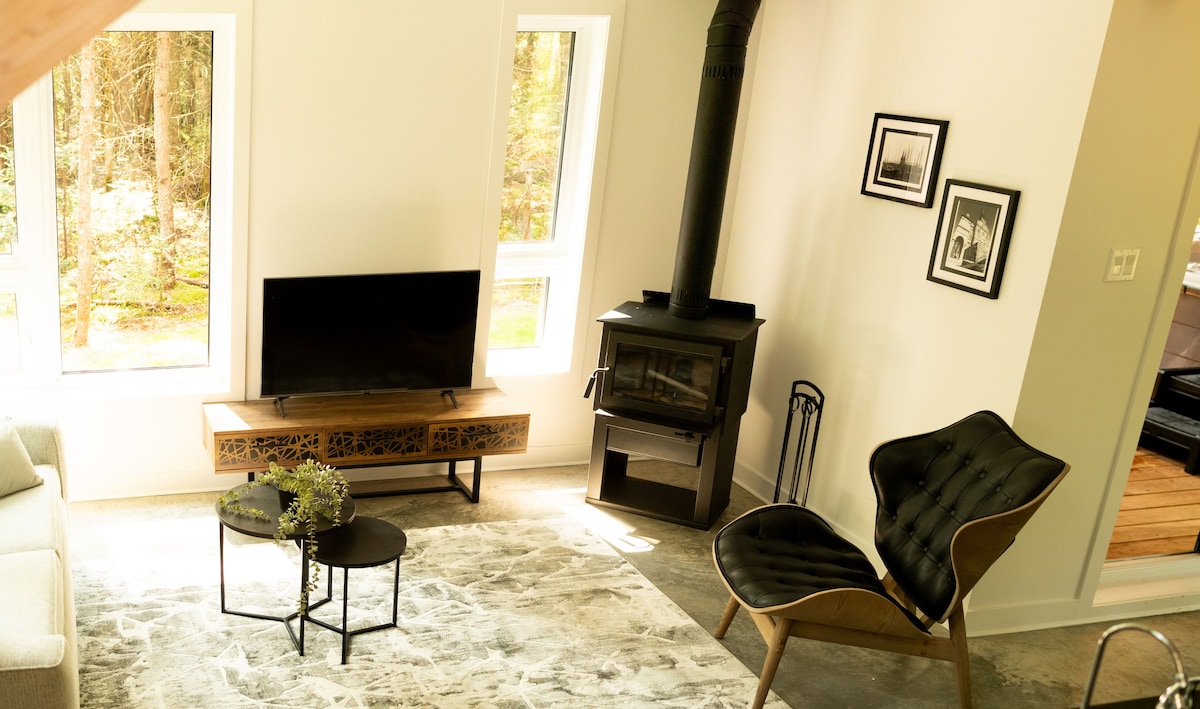 • 🌳 Fenestration abondante et plafonds cathédrale offrant une vue imprenable sur la forêt