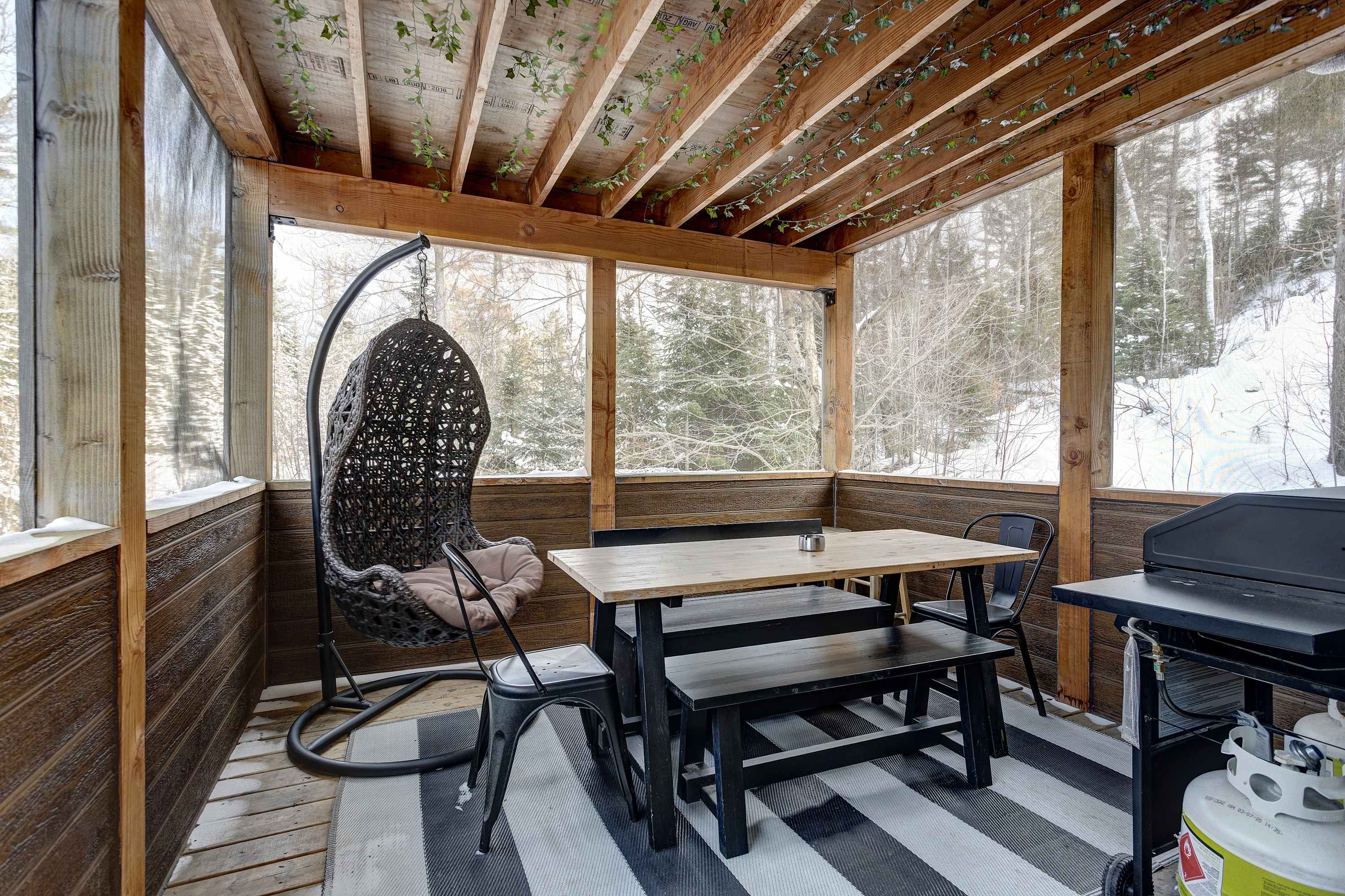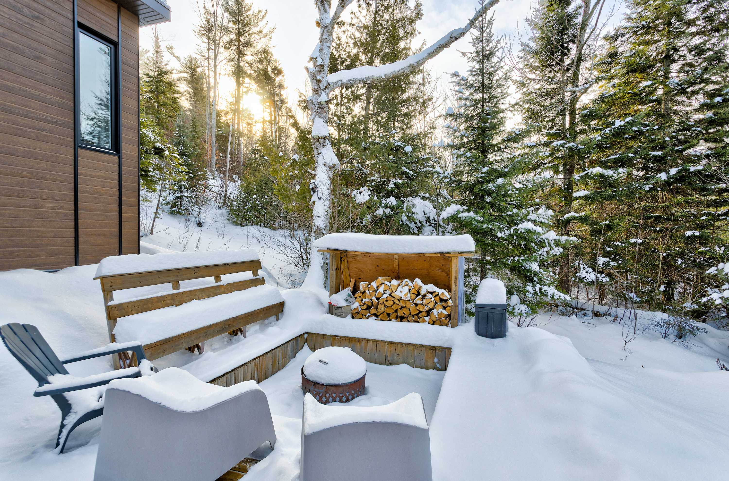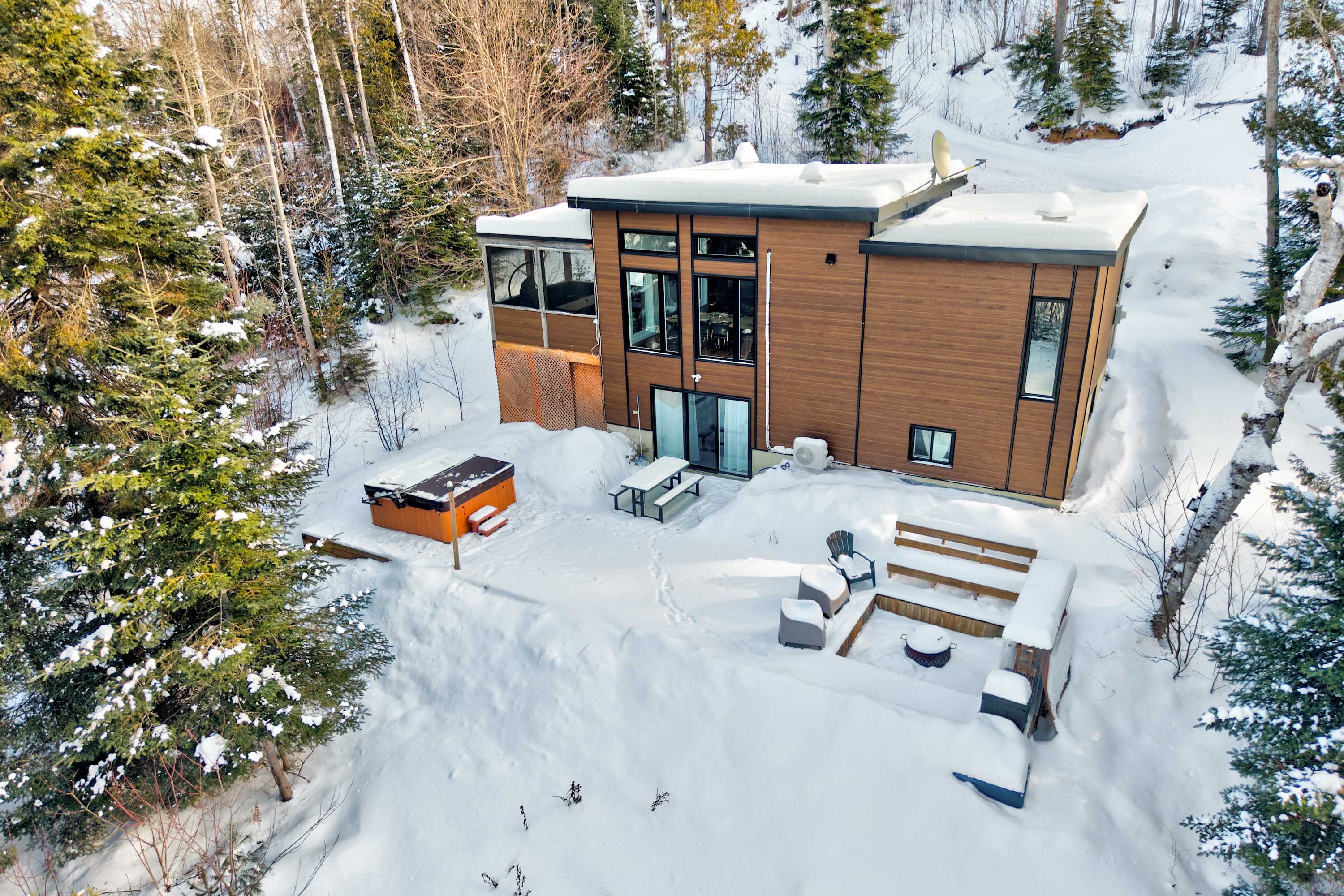Les clients ont accès à l’ensemble du chalet, incluant toutes les pièces intérieures, le spa, la terrasse et les espaces extérieurs.