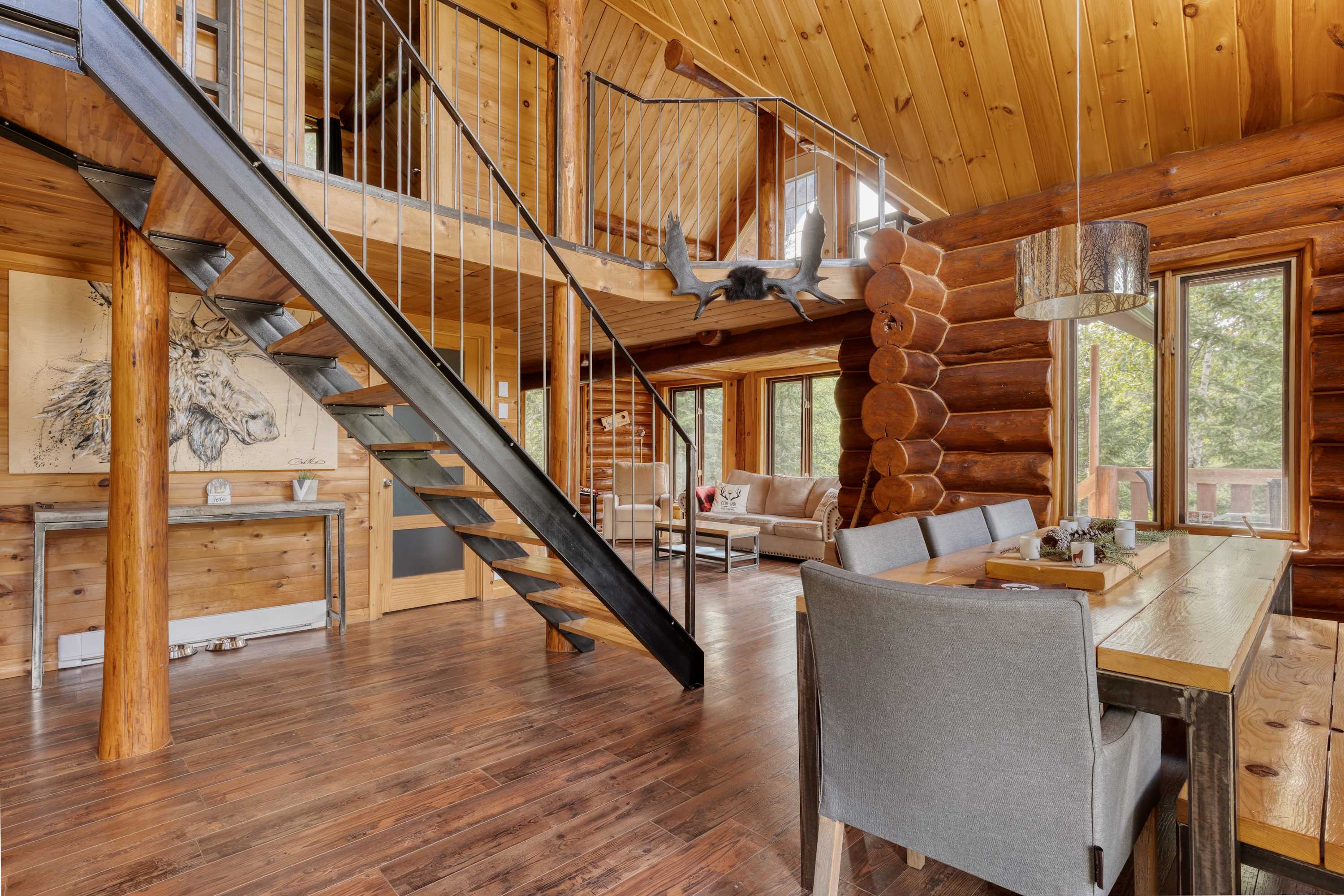 Le chalet Bo Bois Rond offre un cadre chaleureux en bois rond pour un séjour en nature. Il dispose d’un deuxième salon avec divan-lit, d’un poêle à bois, d’un spa et d’une petite pièce secrète pour les enfants. Les animaux sont acceptés moyennant des frais. À proximité, profitez des sentiers de motoneige et VTT, des locations d’équipement, d’un terrain de golf et de bonnes adresses comme la Microbrasserie du Taureau et le Resto Bar Le Central.
