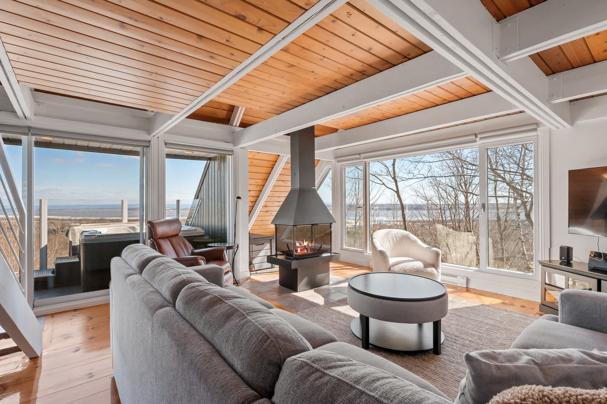 Profitez d’une vue imprenable sur le majestueux fleuve Saint-Laurent depuis le spa privé sur la terrasse. Idéal pour les amateurs de plein air, les familles, une escapade romantique ou des amis en quête de détente, ce refuge unique dans les arbres allie confort moderne et chaleureuse ambiance d’un séjour en pleine nature.