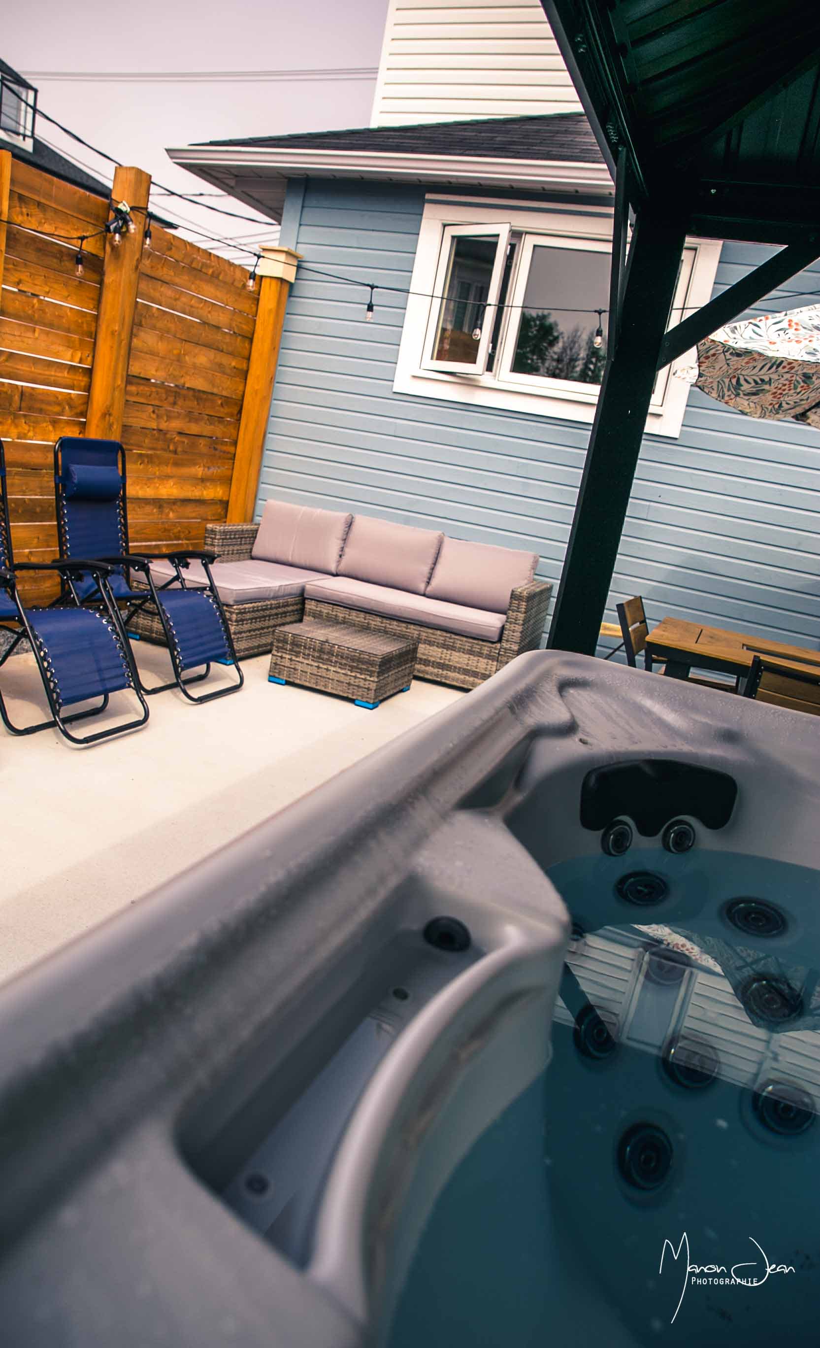 Vous aurez accès à l’ensemble de la propriété ainsi qu’au spa extérieur, idéal en toute saison.