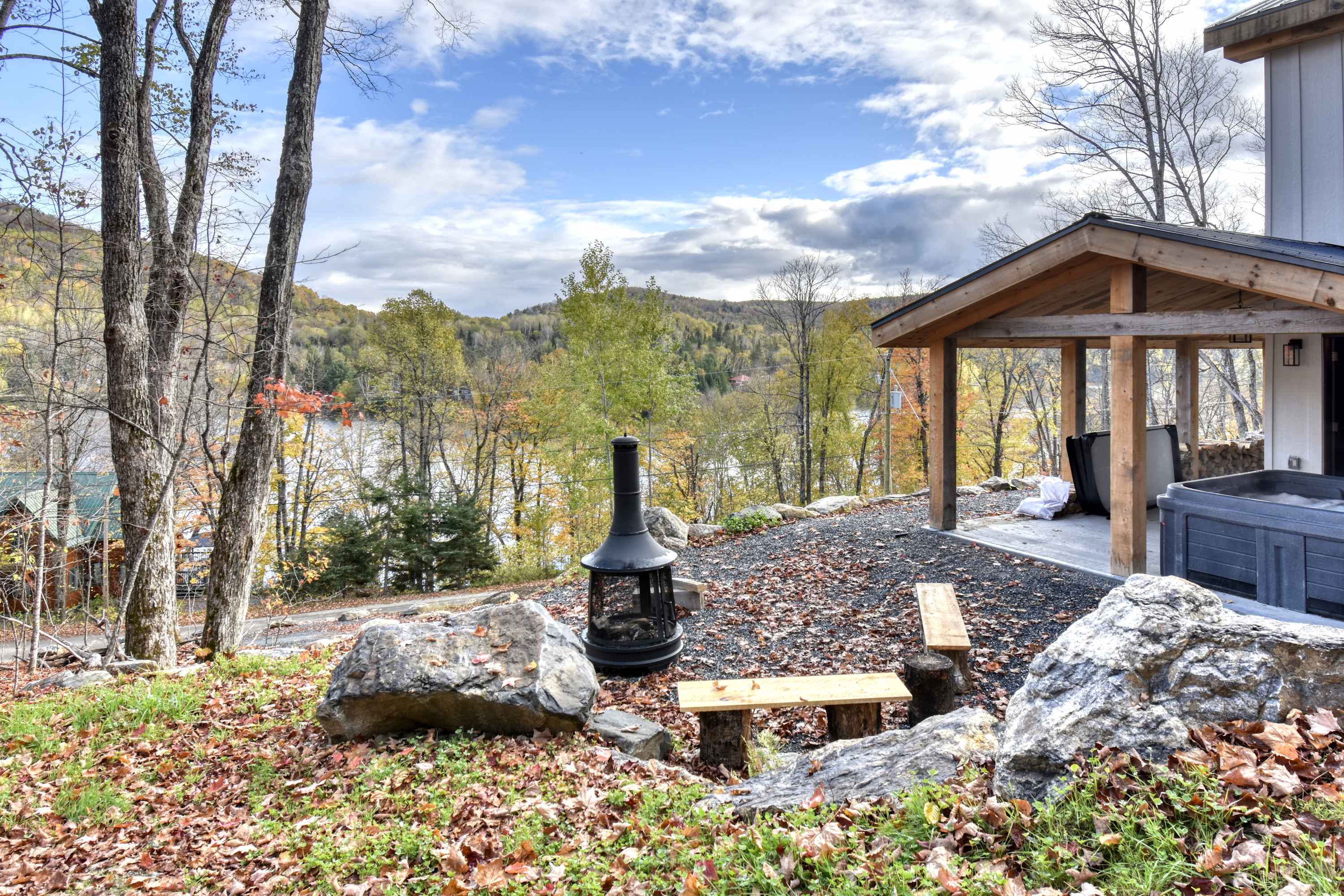 Le chalet est situé dans un environnement calme et boisé à Nominingue, un charmant village des Laurentides reconnu pour son lac majestueux, ses sentiers et son atmosphère paisible.