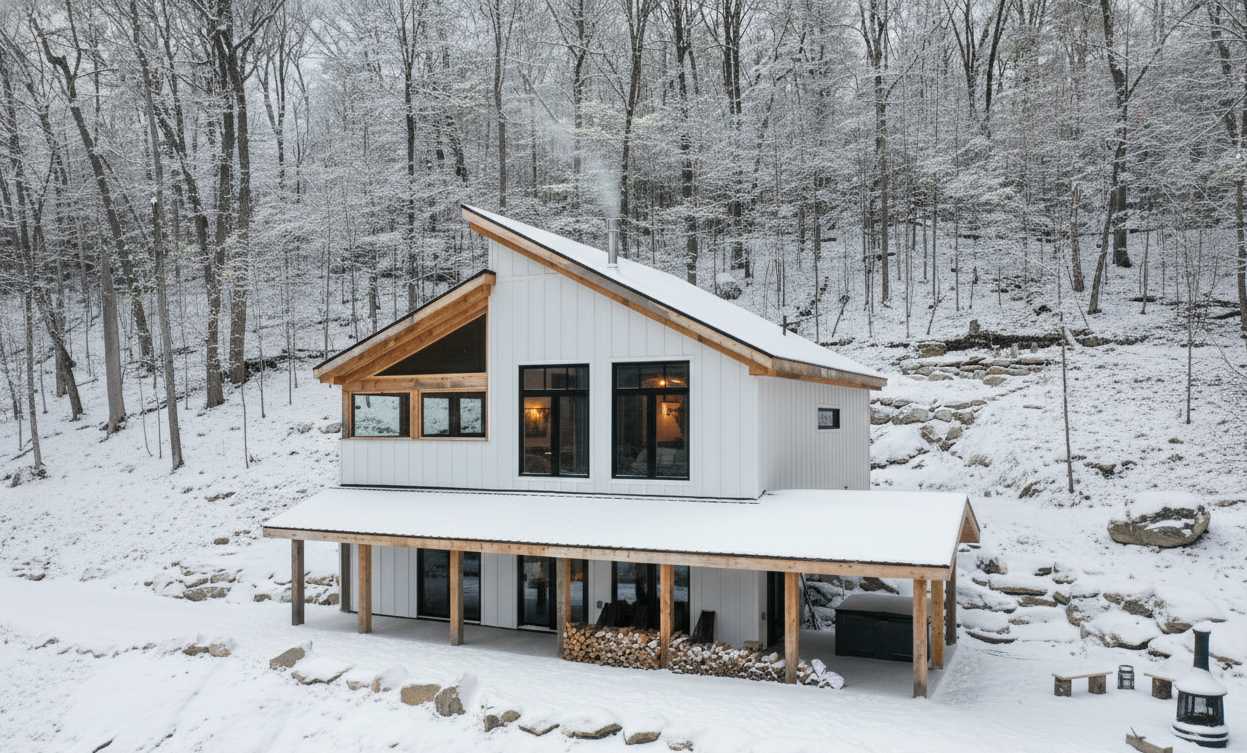 Ce chalet allie modernité et charme naturel, avec une abondante fenestration qui inonde les espaces de lumière et un spa privé pour des moments de détente absolue.