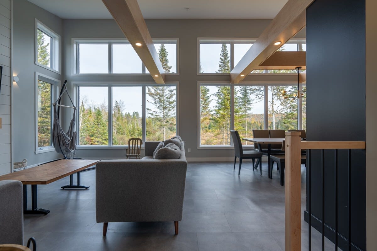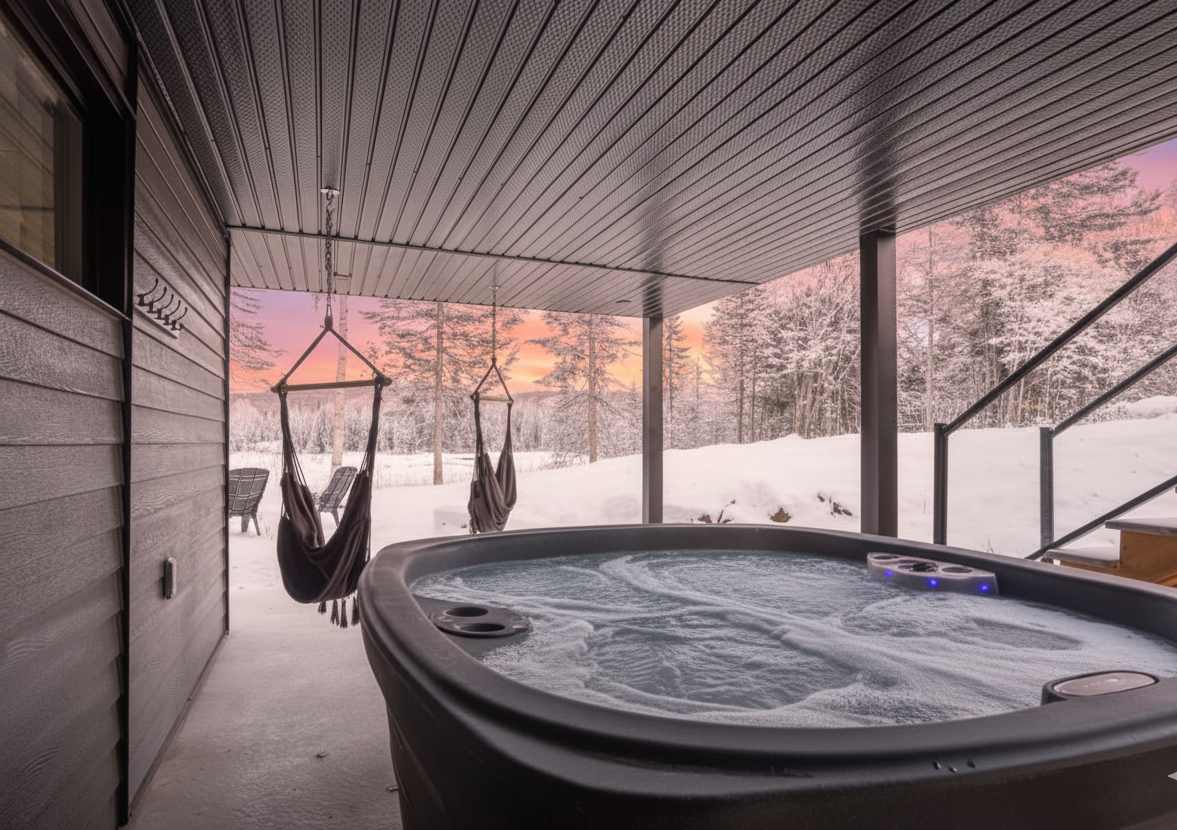 Nichée au cœur de la forêt, notre chalet moderne et chic vous offre une échappée au milieu de la nature québécoise. Alliant confort contemporain et atmosphère chaleureuse des chalets de luxe, notre chalet crée un cadre enchanteur pour des vacances inoubliables.