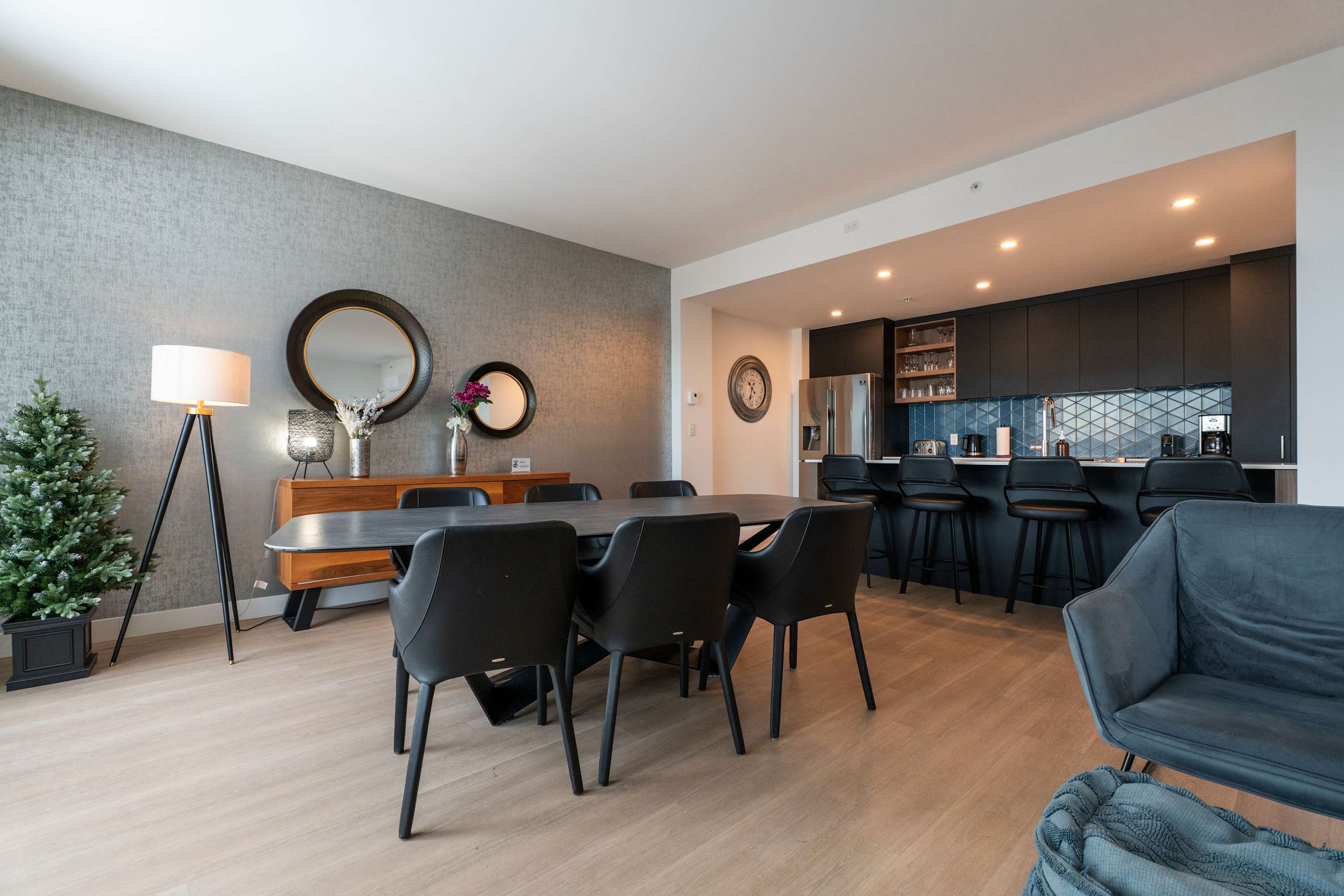 • Open-concept space combining kitchen, dining room, and living area