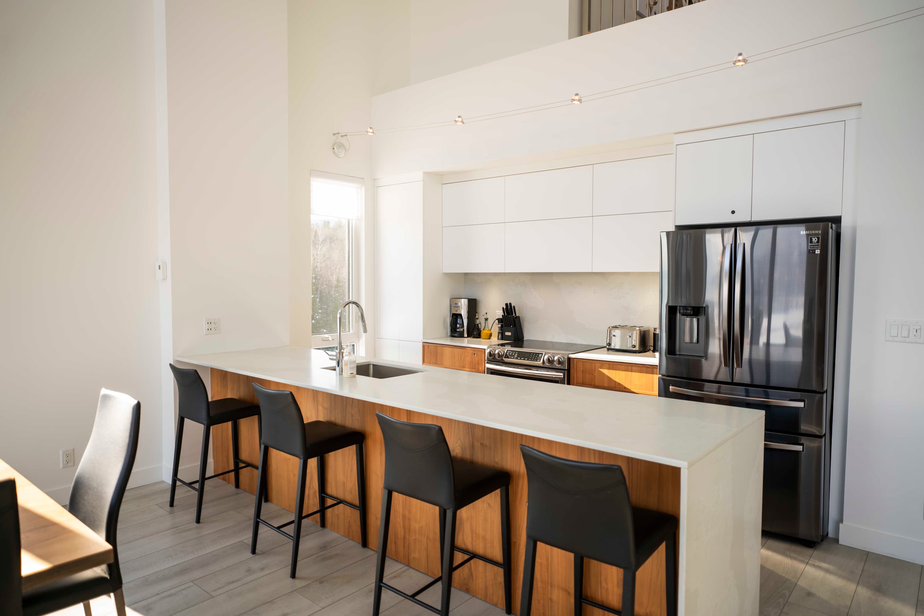 Located on the 4th floor, condo 401 comfortably accommodates up to 8 guests in a high-end setting offering exceptional views of Baie-Saint-Paul. Perfect for a stay with family or friends.