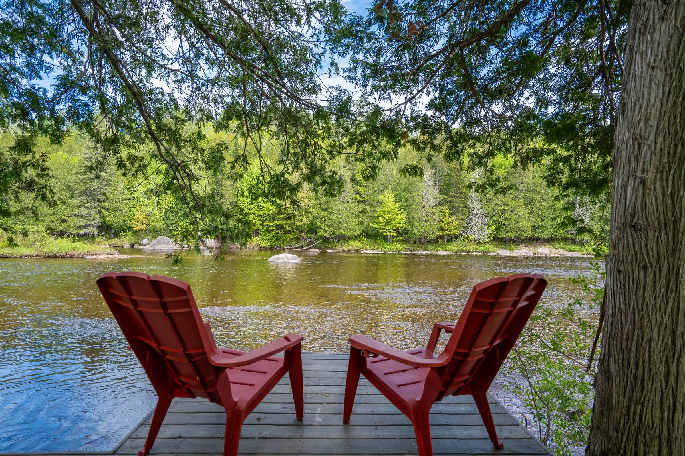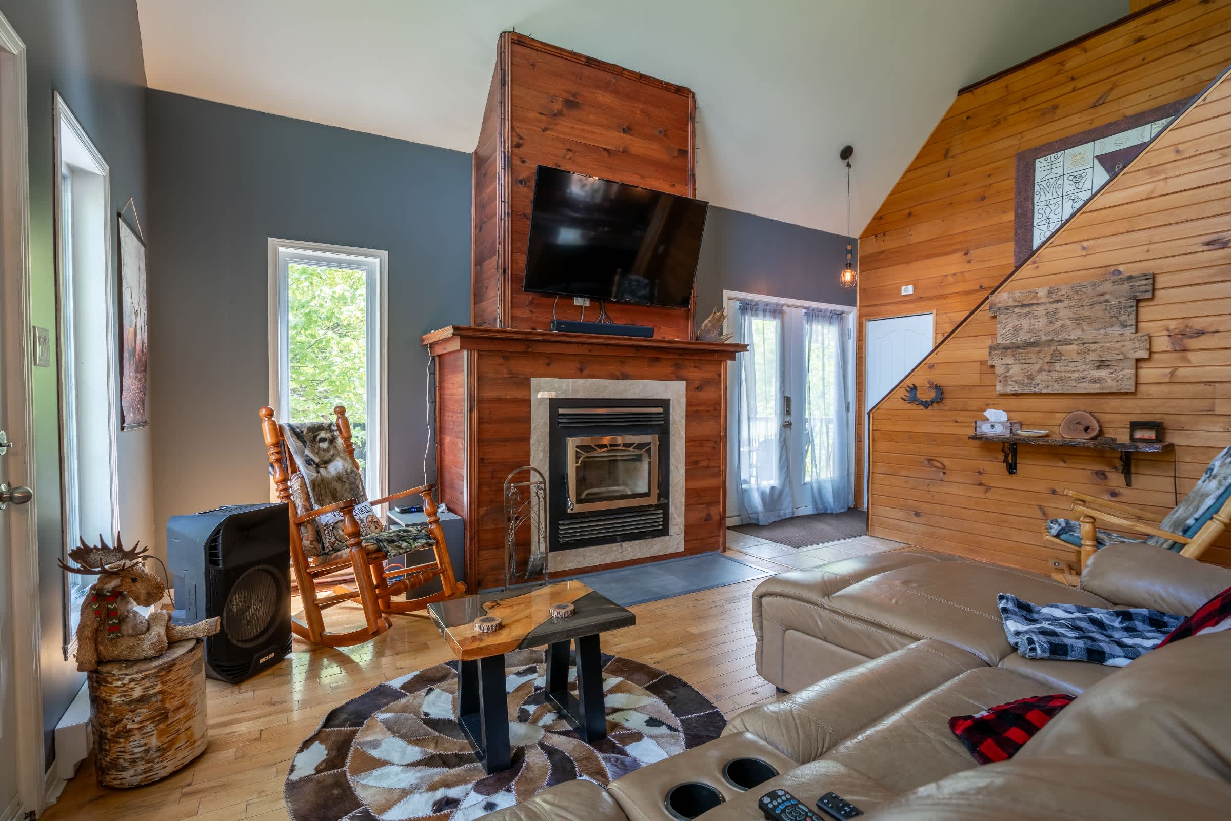 Chalet L’Coureur des Bois, nestled in Chertsey, is a true haven of peace in the heart of nature. With its covered riverside terrace, outdoor fire pit, double hammock, and charming garden-style gazebo offering a unique view of the deer, it’s the perfect place to recharge and unwind.