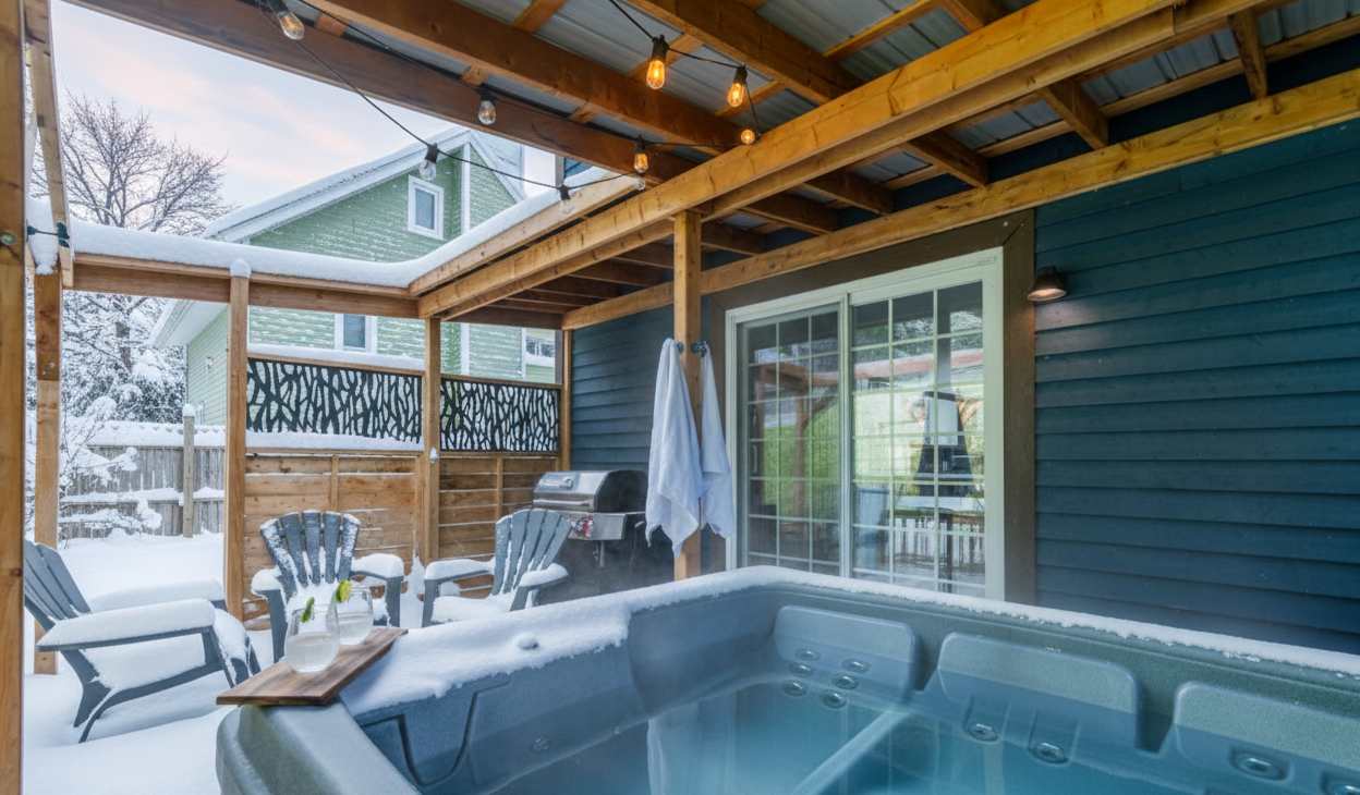 This chalet combines rustic mountain charm with modern comfort for a truly relaxing stay, featuring a private hot tub for ultimate unwinding. Relax while taking in the stunning surrounding landscapes or venture out to nearby ski slopes and hiking trails.