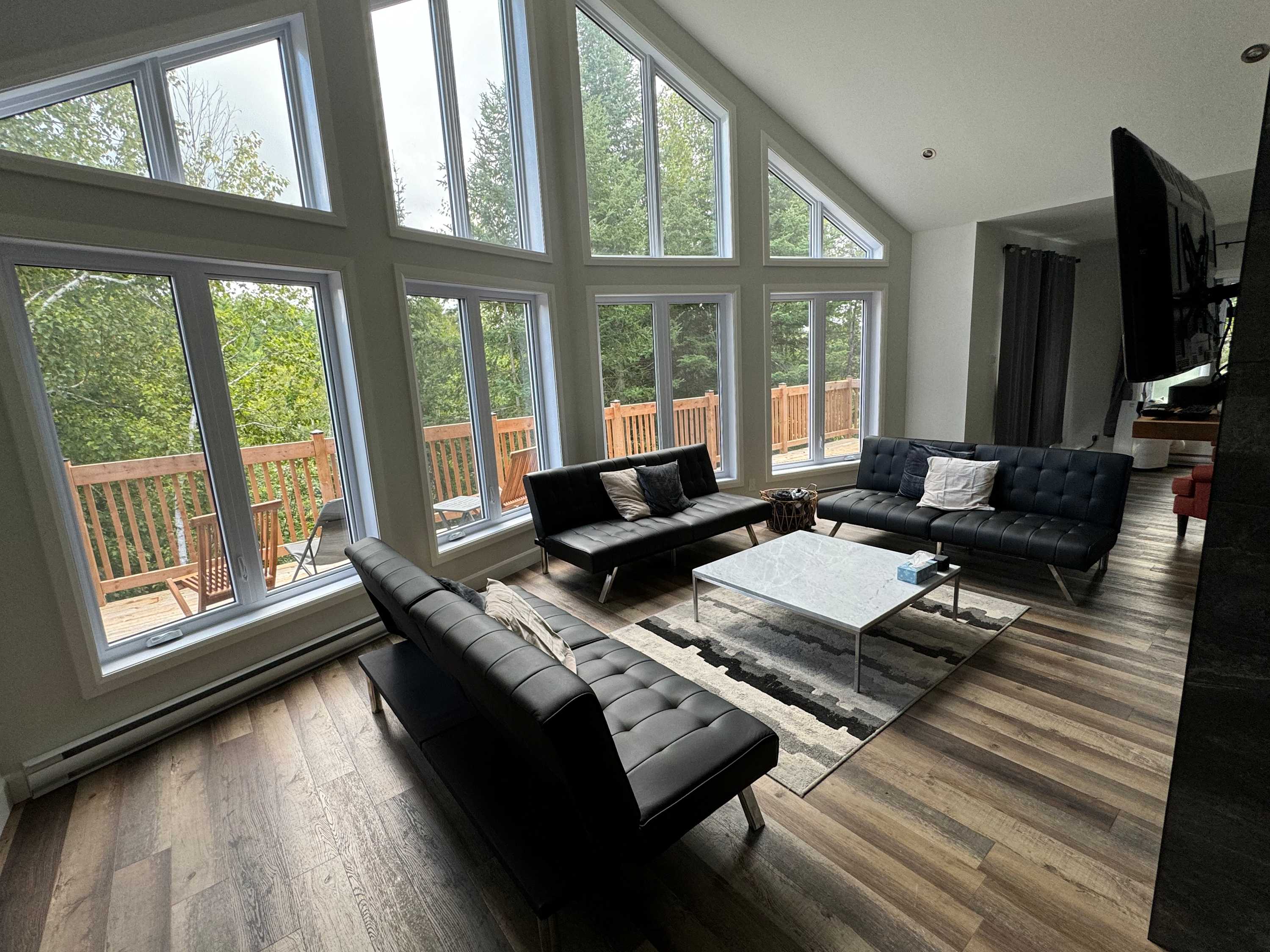 The chalet is located in Labelle, in the Laurentians, a region known for its stunning landscapes, outdoor activities, and proximity to Mont-Tremblant.