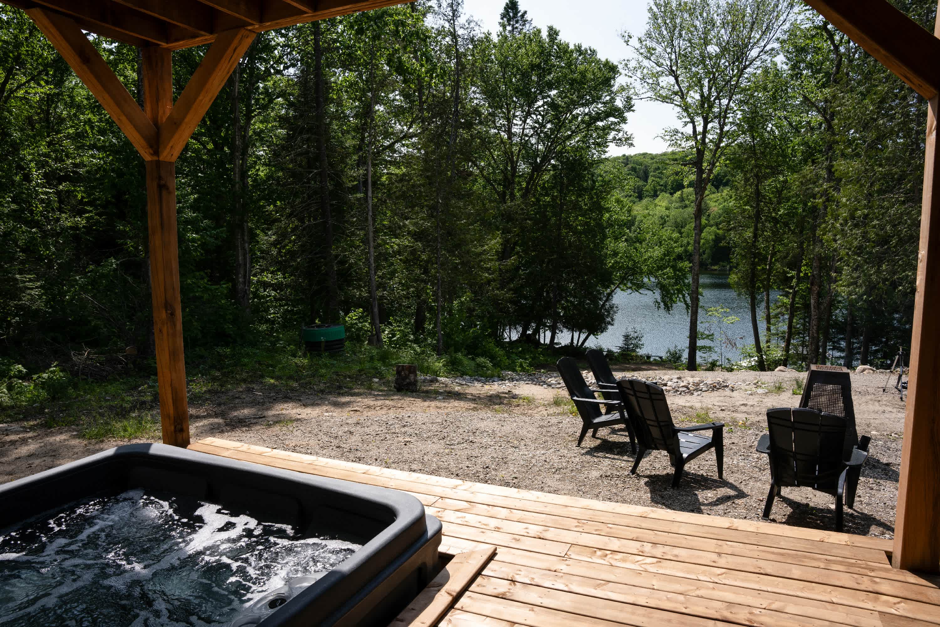 Guests have access to the entire chalet and its facilities, including the spa, deck, and common areas. The chalet is designed to offer full autonomy while ensuring comfort and convenience.