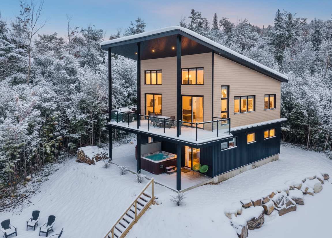 With its indoor wood stove, outdoor hot tub, and private access to Lac du Cerf, it’s the perfect place to unplug—whether as a couple, with family, or among friends. Whether you want to explore nearby trails, paddle across the lake, or simply relax by a fire, Vazy-Mollo is the ideal spot to enjoy all four seasons.