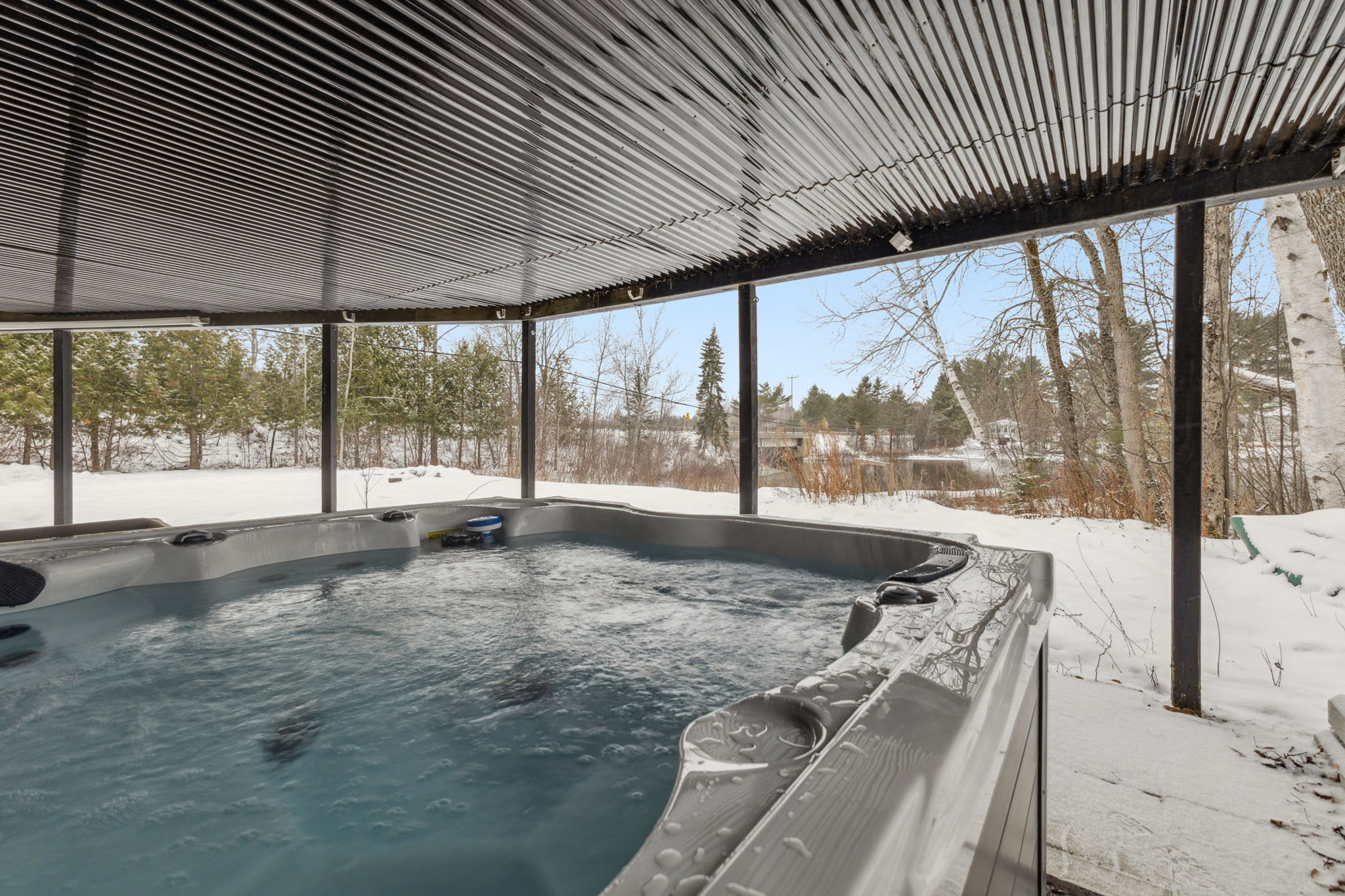 • Relaxing in the hot tub surrounded by snowy trees
