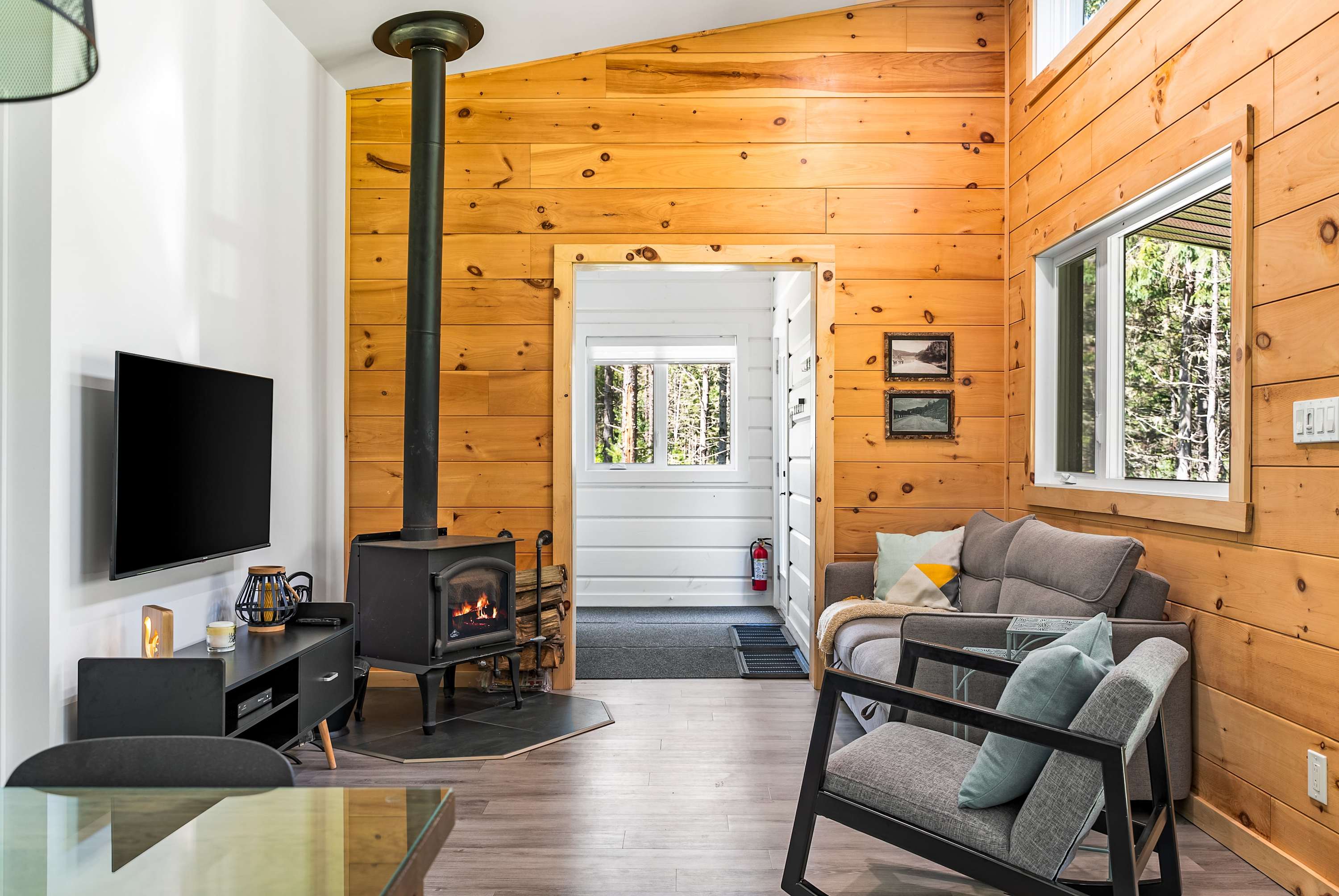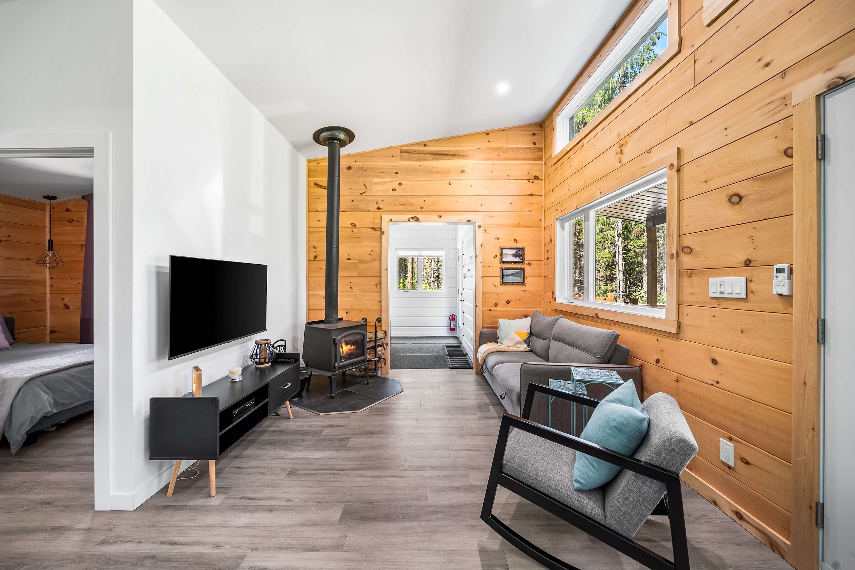 This cozy chalet accommodates up to 6 guests, with a warm interior and thoughtful amenities designed to make you feel at home year-round.