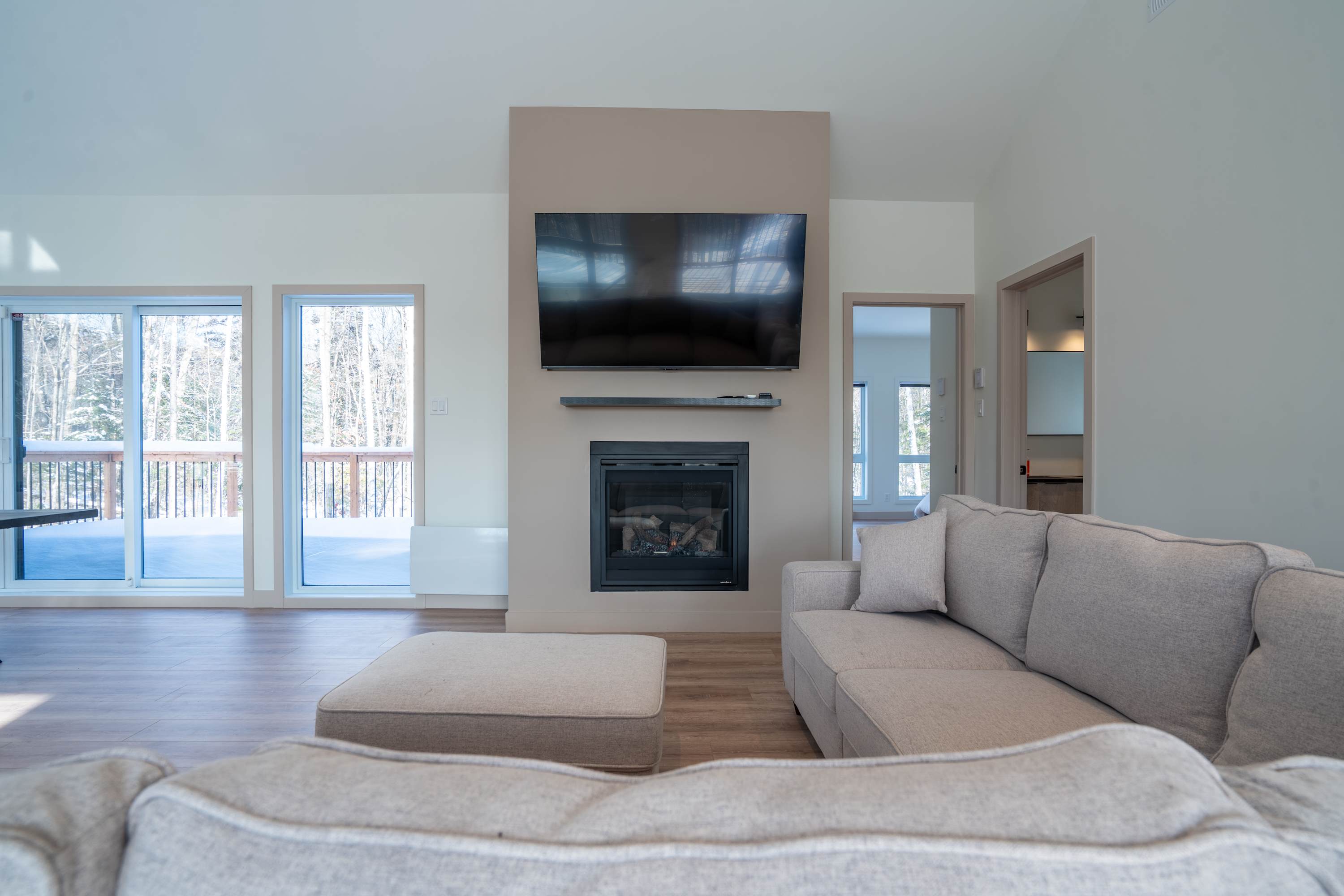 With its warm atmosphere, high-end spa, open-concept living spaces, and fully equipped game room, this chalet promises a memorable stay blending comfort, entertainment, and tranquility.