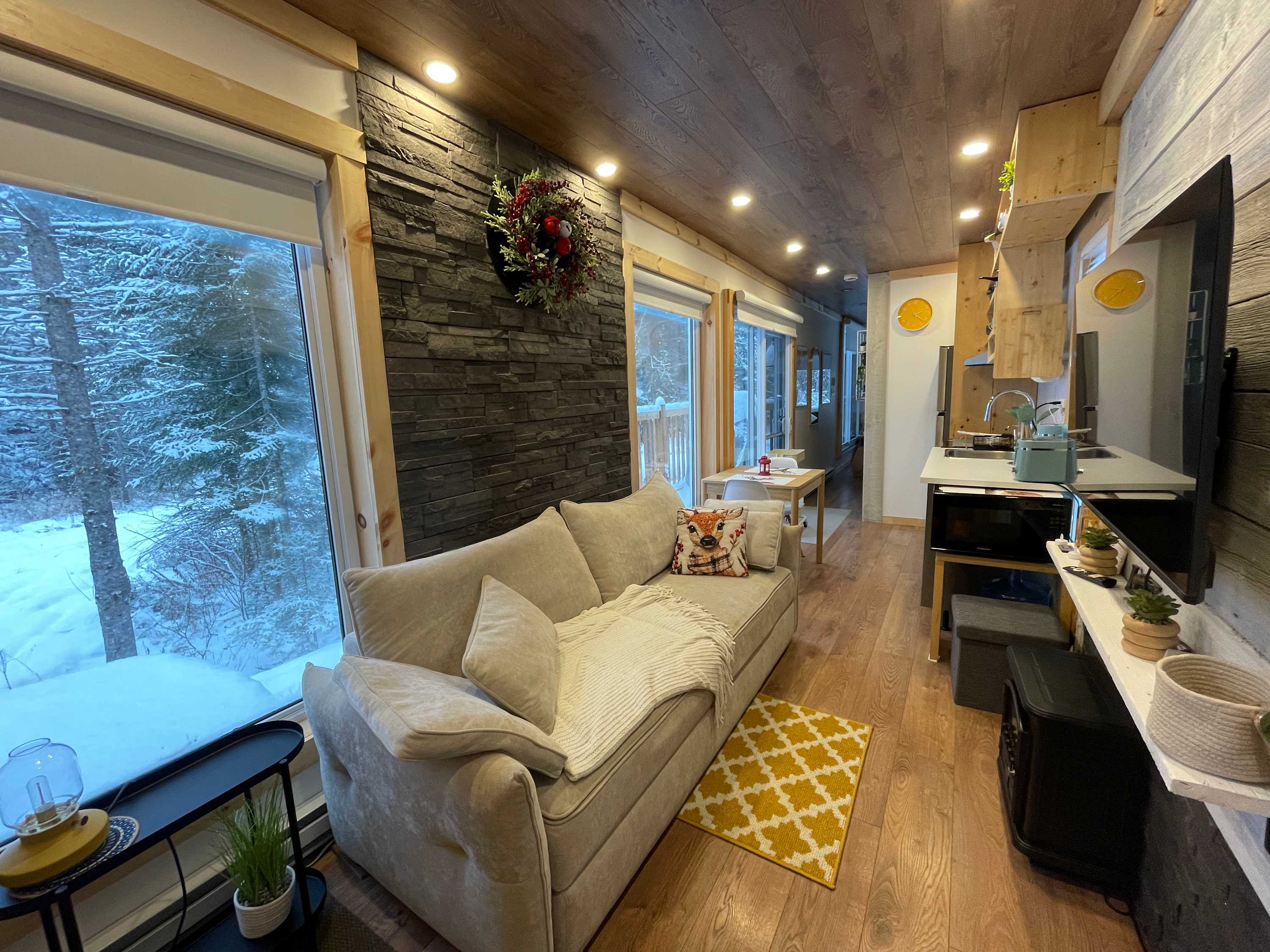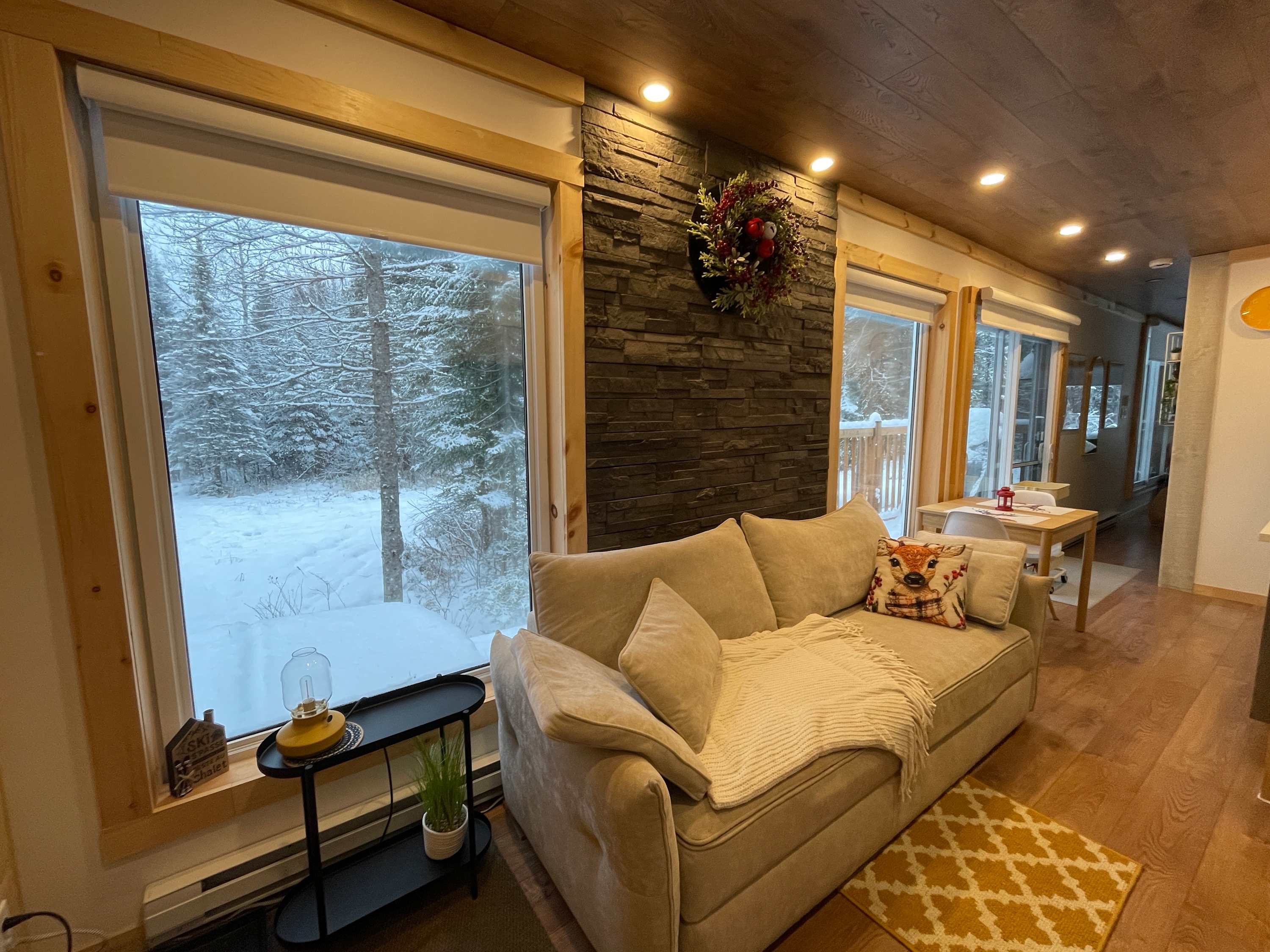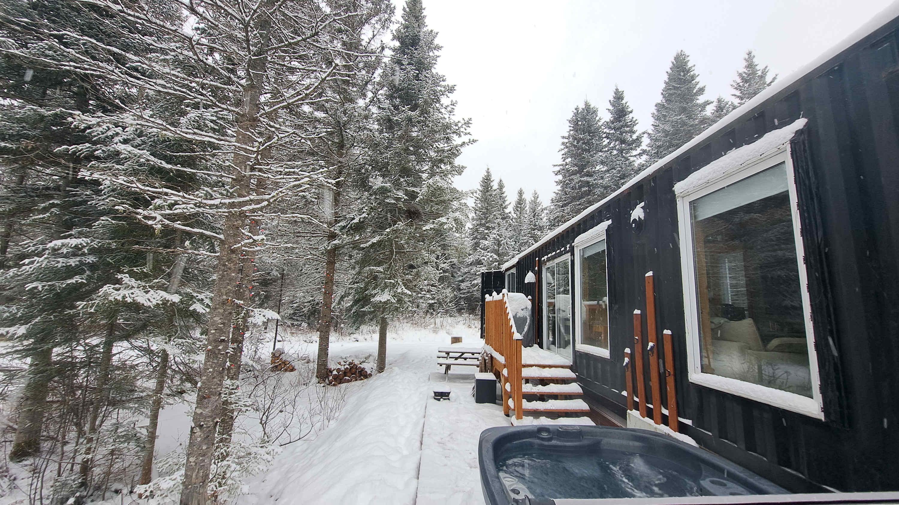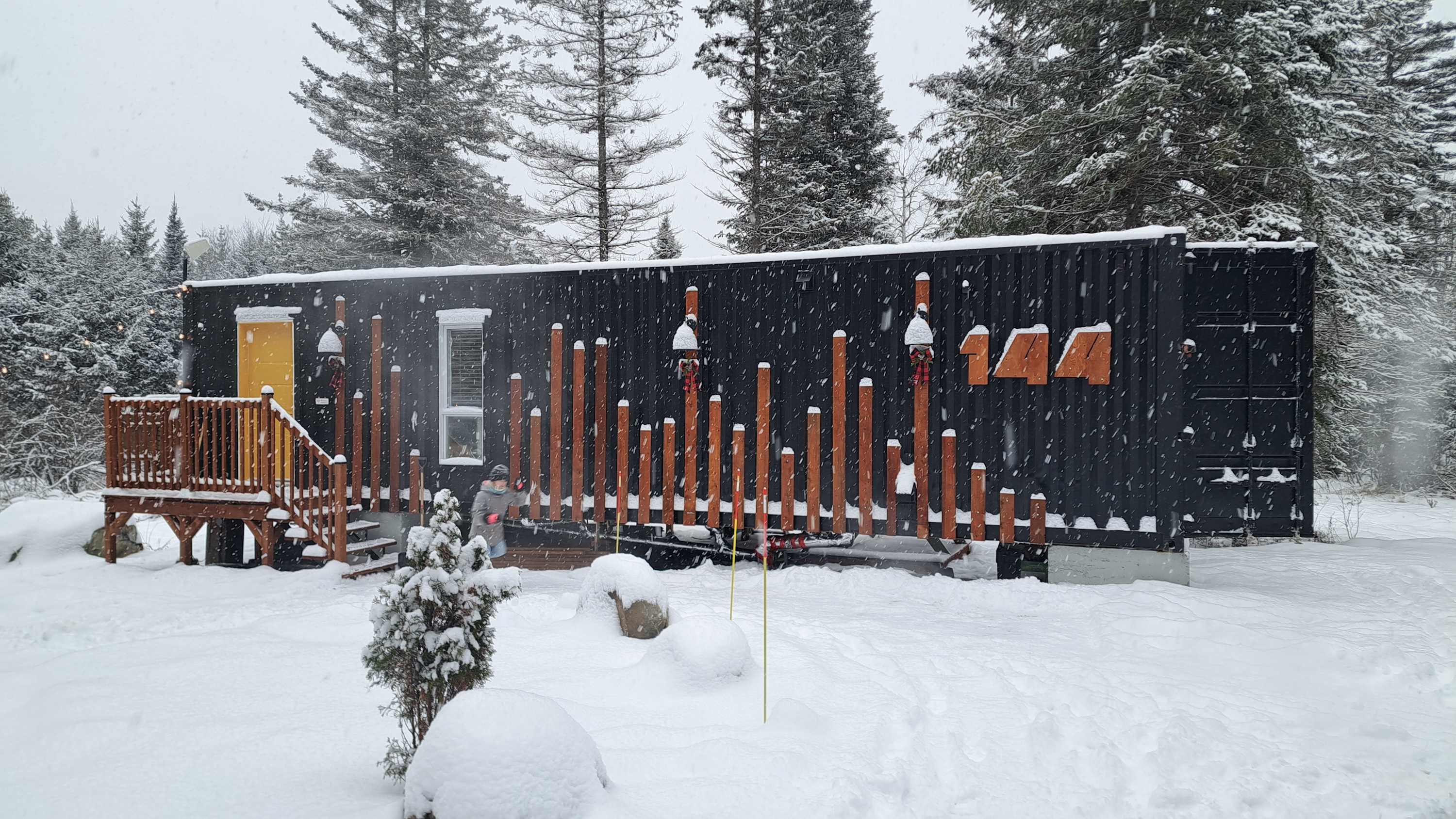 Because the cabin is built from a shipping container and nestled in nature, it’s normal for the floor to feel cooler during the winter, especially during very cold spells. For your comfort, we strongly recommend bringing slippers or warm socks so you can fully enjoy your stay.