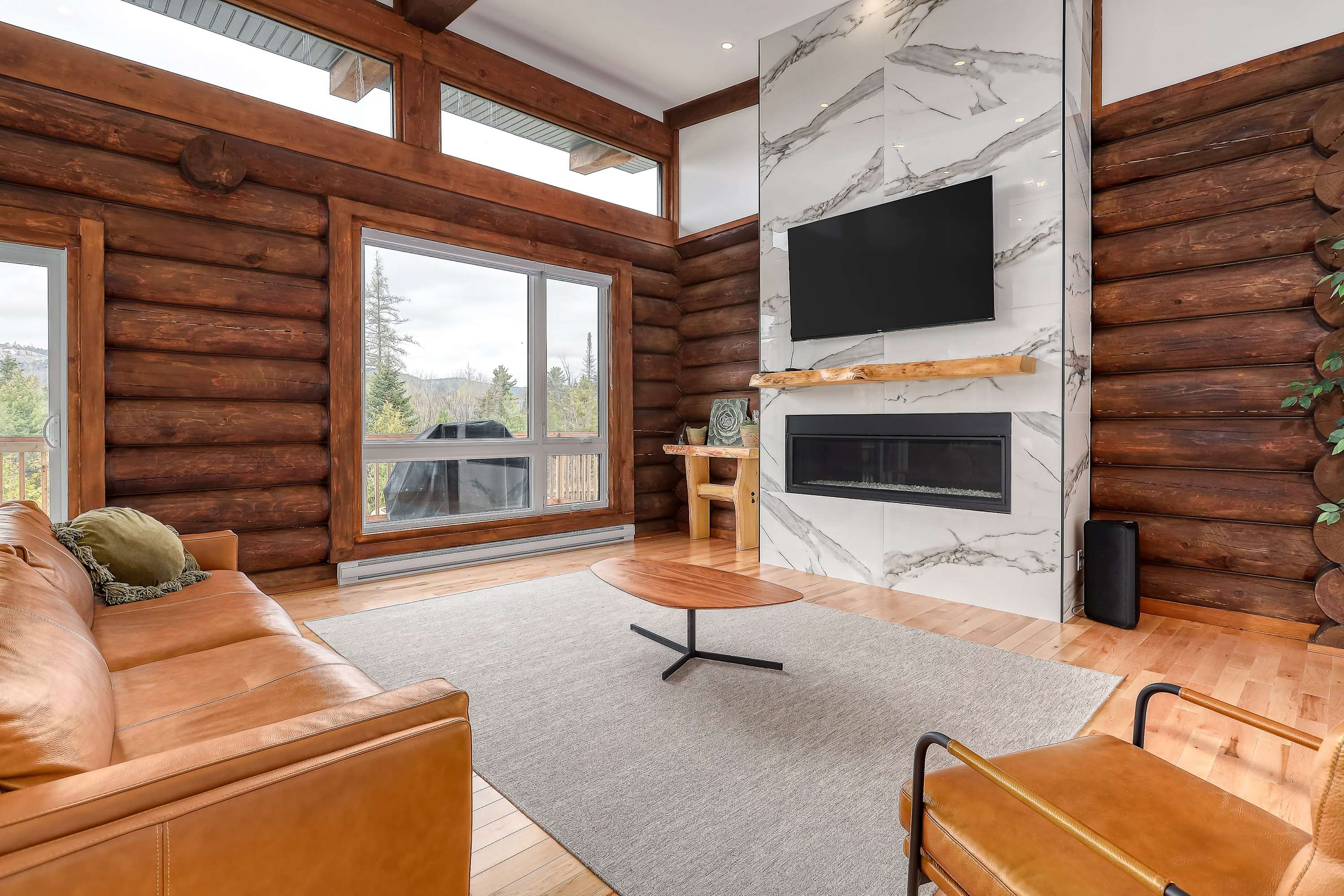 - Open-concept living space with breathtaking views of the lake, forest, and Val Saint-Côme ski resort