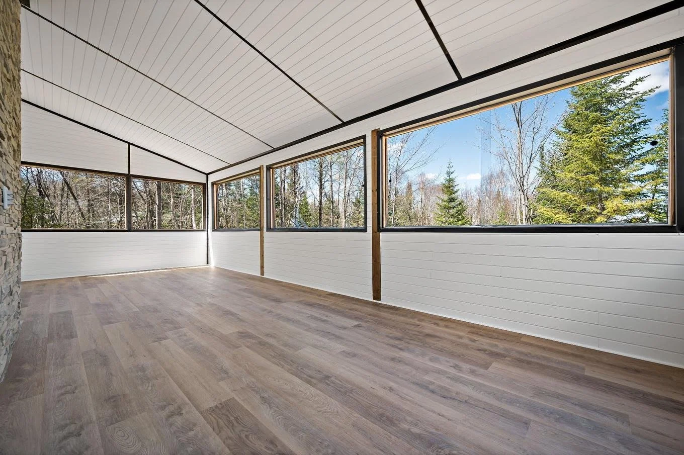 À l’extérieur, le chalet offre une grande véranda, idéale pour savourer un repas en plein air ou simplement vous détendre en admirant la magnifique vue sur la nature environnante. Un foyer extérieur vous attend pour des soirées autour du feu, que vous pourrez compléter avec une baignade ou une activité nautique sur le Lac-Supérieur, à seulement 2 minutes en voiture. Il est possible d’amarrer vos bateaux ou vos seadoos directement au lac.